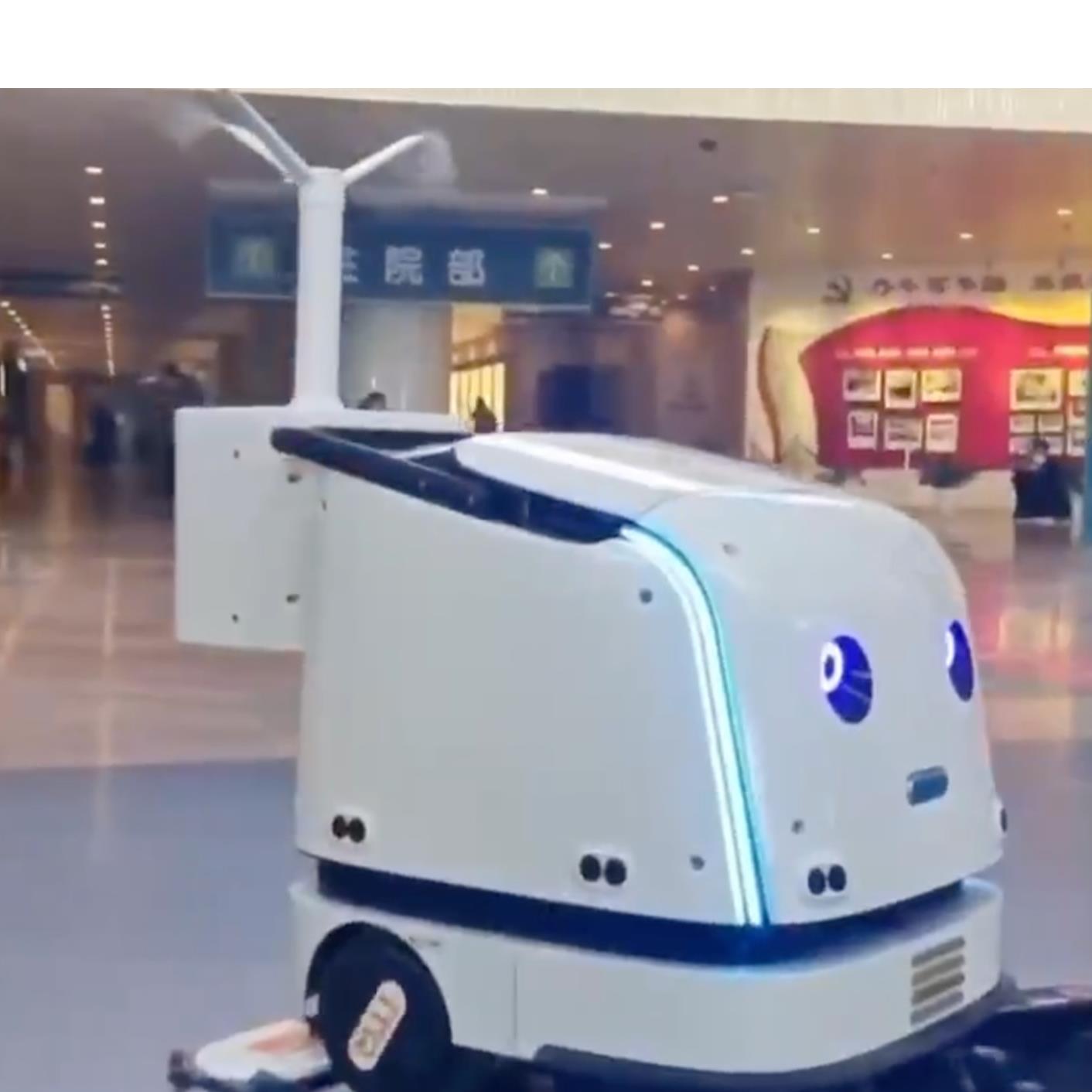 描述:医院洗地机器人,采用萌化设计,在保障医院日常环境整洁的的同时,也提升了医院的智能化程度。